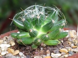 Cochemiea sheldonii, ook bekend als de “Silver Lace Cactus”, is een prachtige toevoeging aan elke cactusverzameling. Deze opvallende cactussoort is inheems in de woestijnen van Mexico en staat bekend om zijn unieke zilverachtige kleur en fijne textuur. De Cochemiea sheldonii gedijt goed in droge en zonnige omgevingen en vereist minimale verzorging, waardoor het een ideale keuze is voor beginnende tuiniers en cactusliefhebbers.
