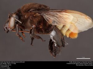 De Eulaema mocsaryi is een prachtige bijensoort die bekend staat om zijn unieke uiterlijk en gedrag. Deze bij heeft een opvallende zwarte kleur met gele strepen en is een belangrijke bestuiver in zijn natuurlijke habitat. Met een gevarieerd dieet van nectar en stuifmeel draagt de Eulaema mocsaryi bij aan het behoud van verschillende plantensoorten.