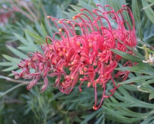 Een prachtige Grevillea ‘Mason’s Hybrid’ met unieke bloemen die een aanwinst is voor elke tuin. Deze plant trekt vogels aan en bloeit het hele jaar door.